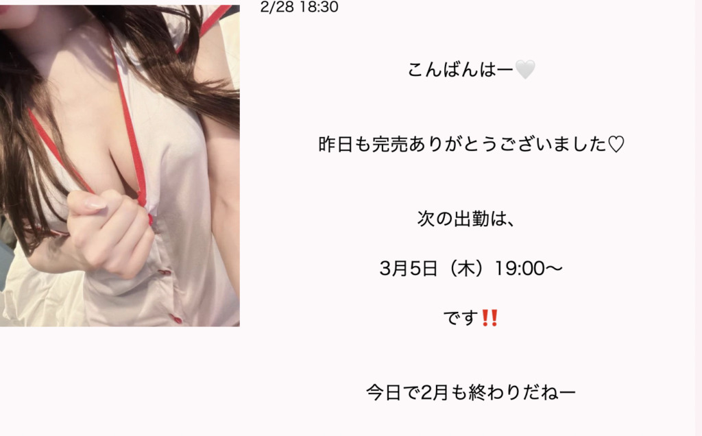 やや予約人気、完売の日もある、出勤やや多い、巨乳、